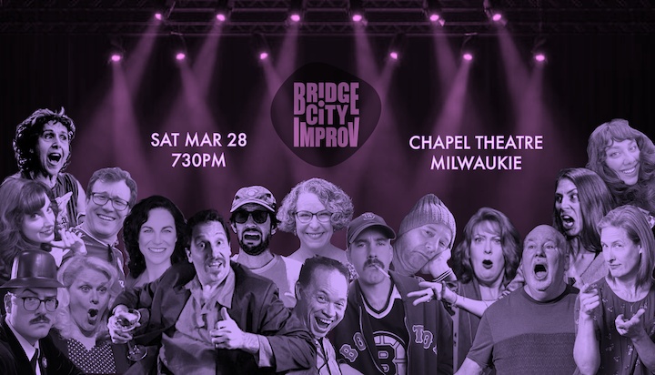 After 8 years of producing improvisational comedy and theater out of the Chapel, we embark on a new adventure with the opening of our own space late spring in downtown Milwaukie. In celebration of the journey taken and the road ahead, this evening will feature 3 sets of improv highlighting some of the great performers you have seen over the past 8 years. Bridge City founders Lisa and Beau Brousseau will participate in all three sets.